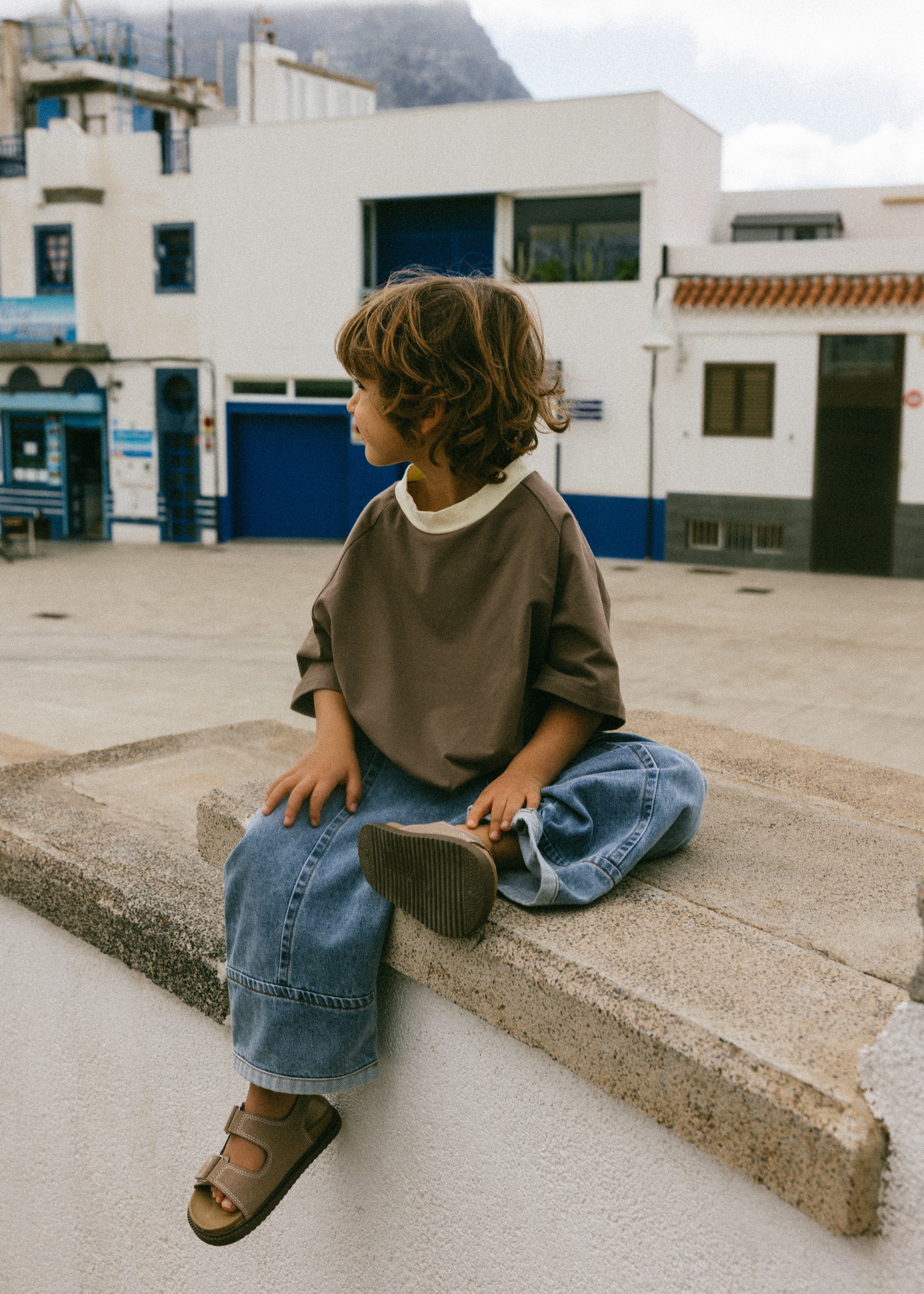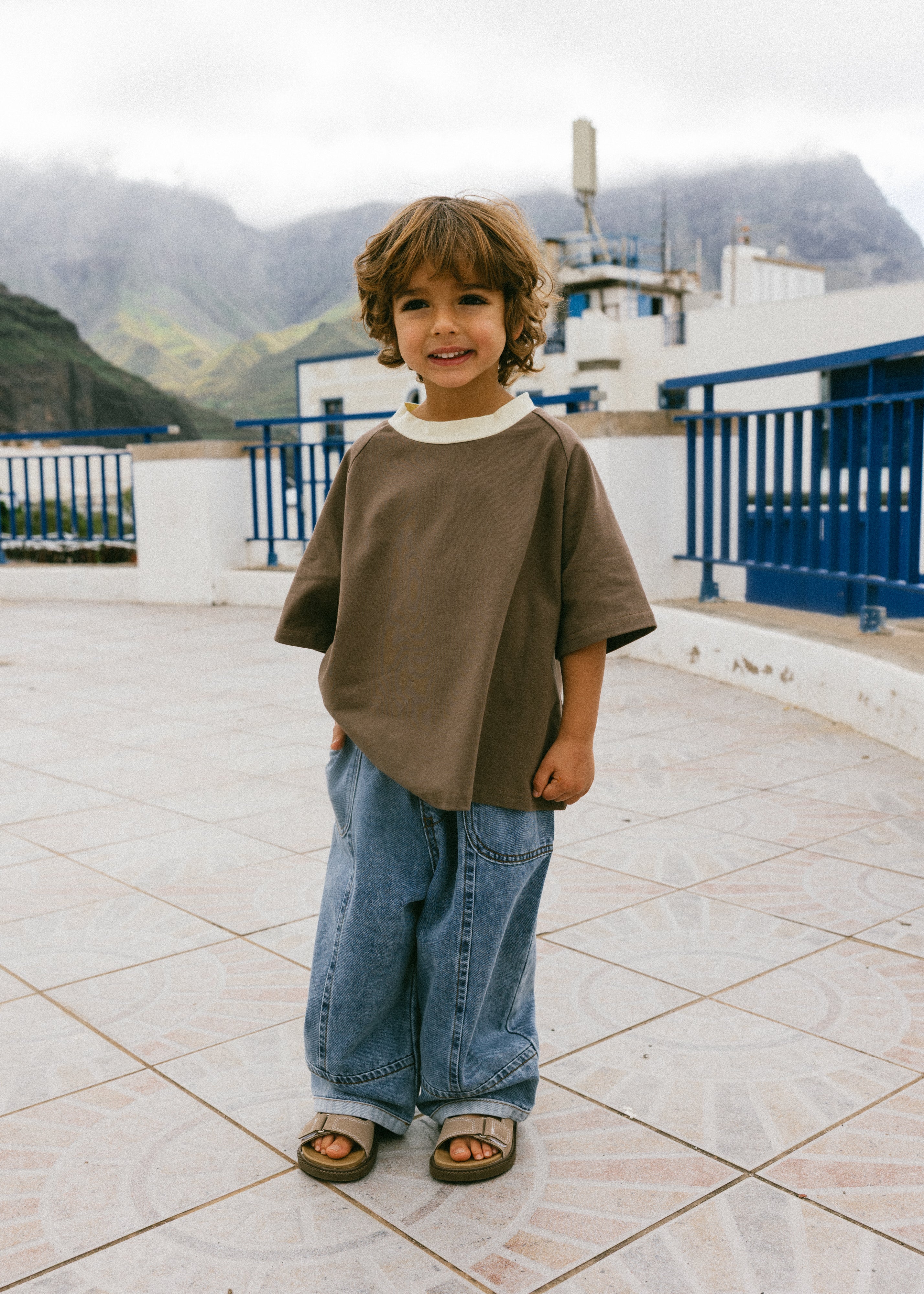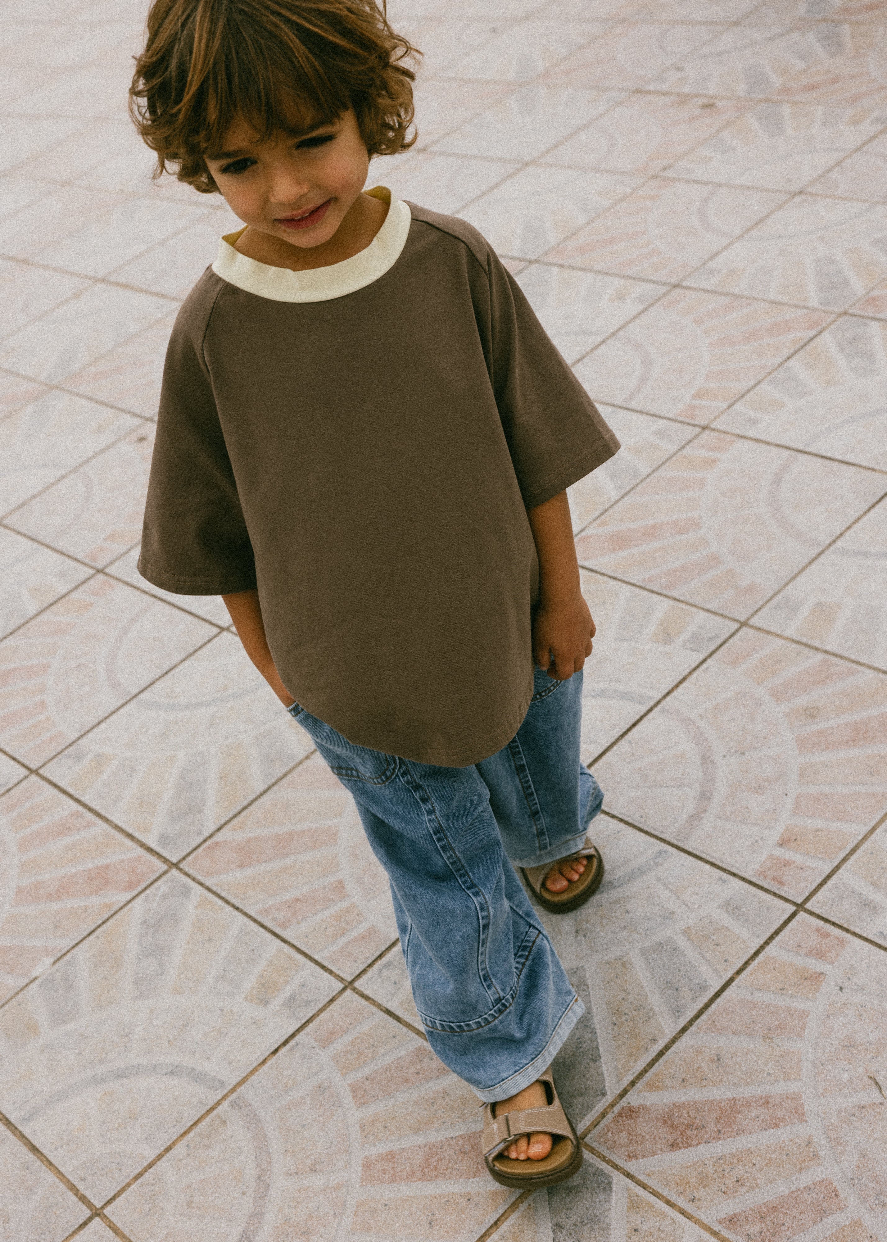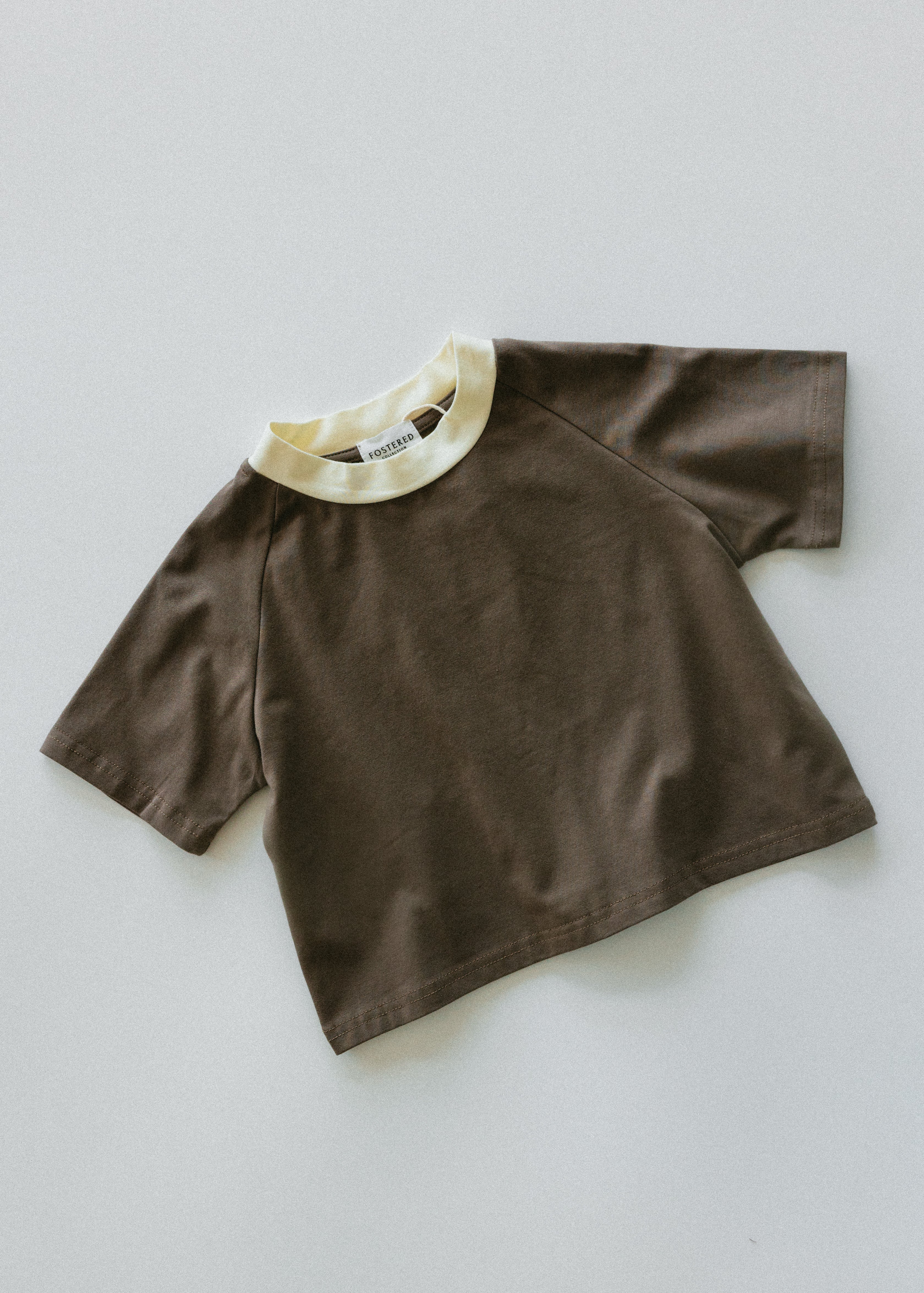 Contrast Collar Baggy Tee- Brown & Cream