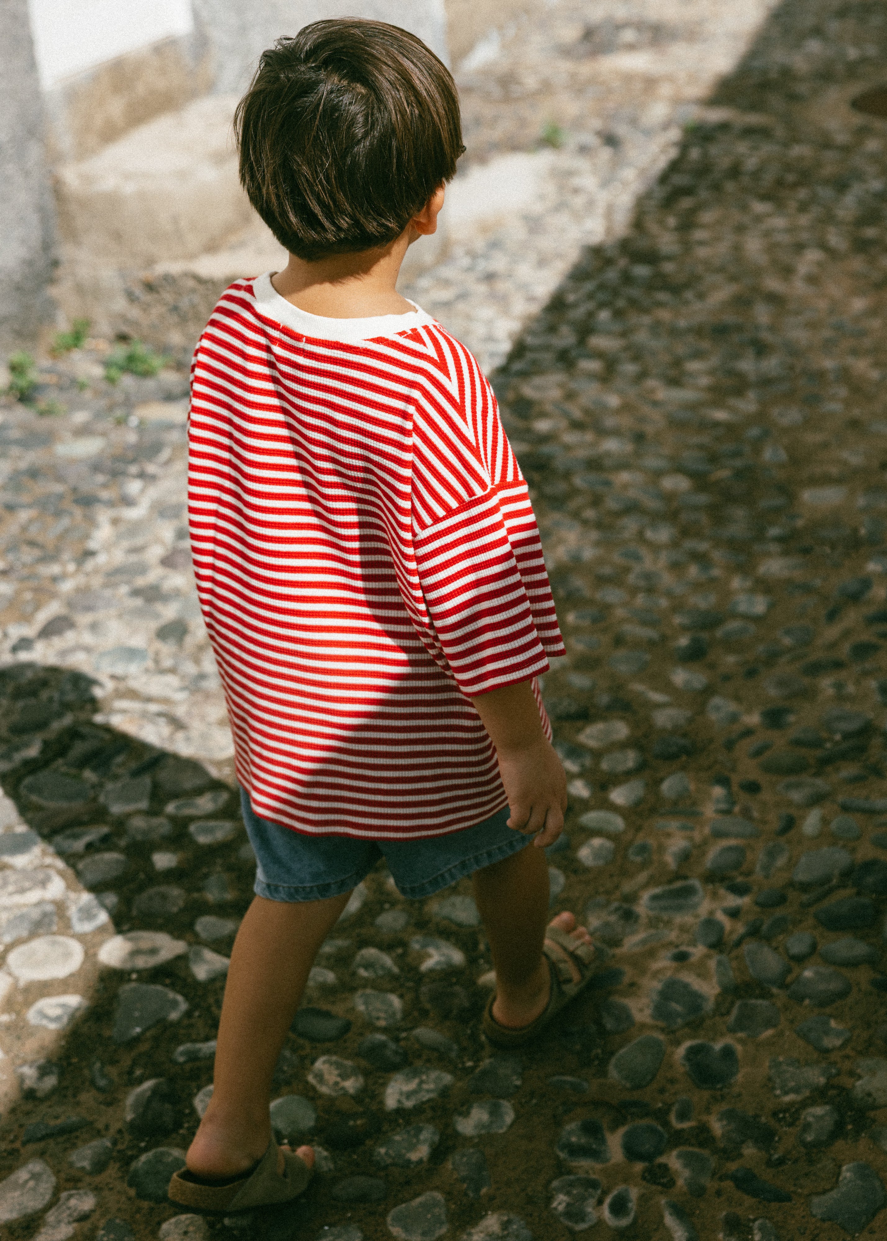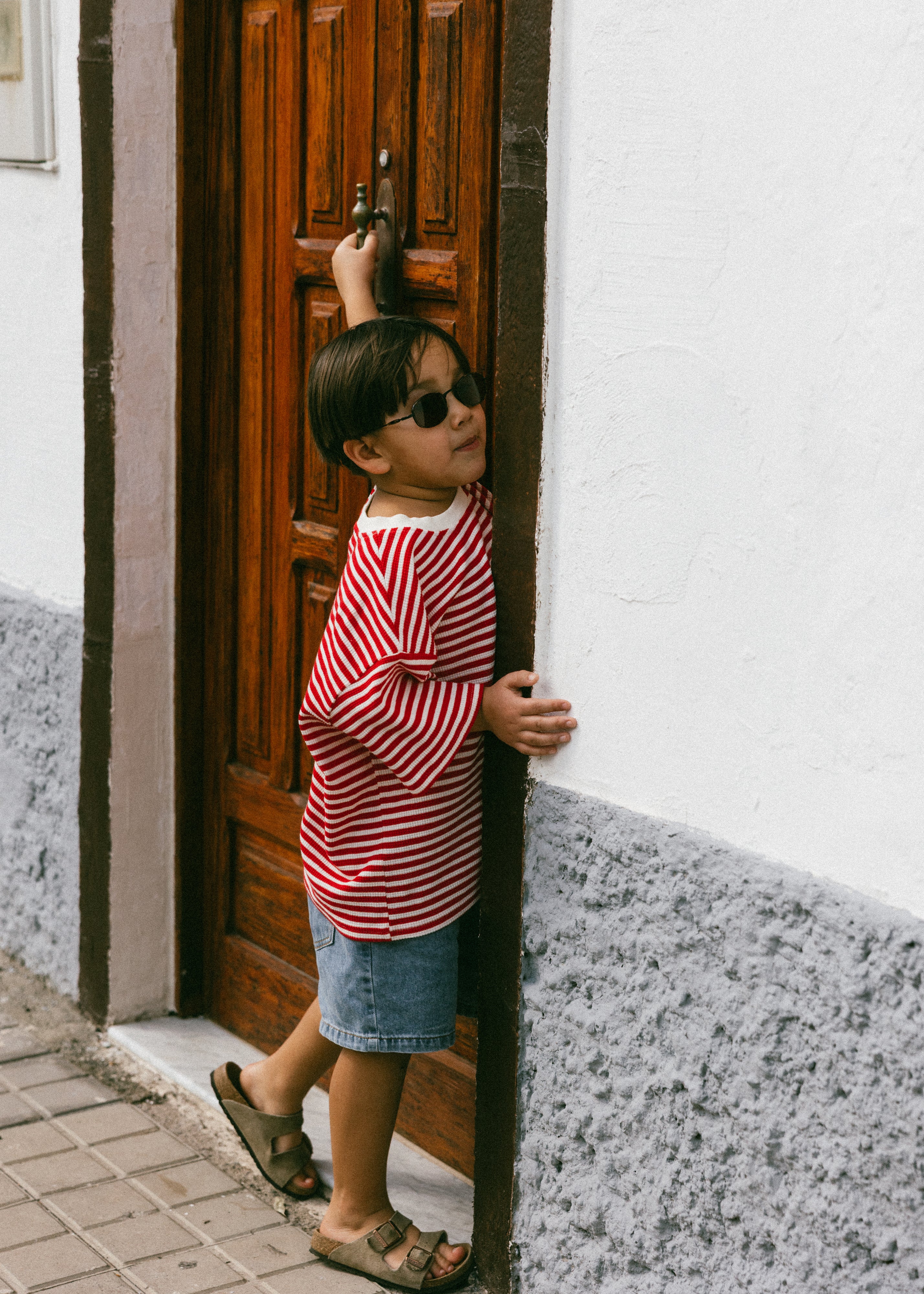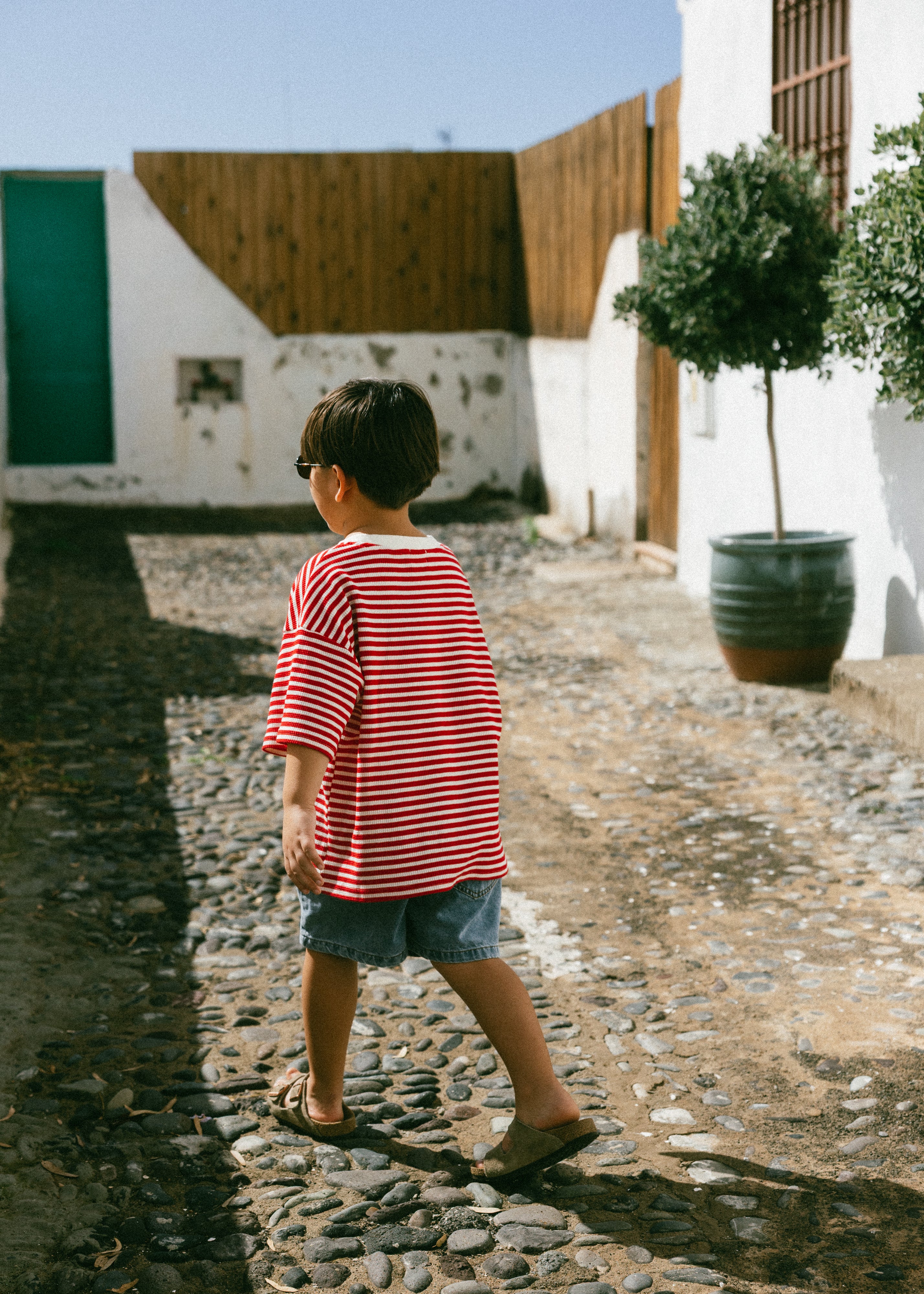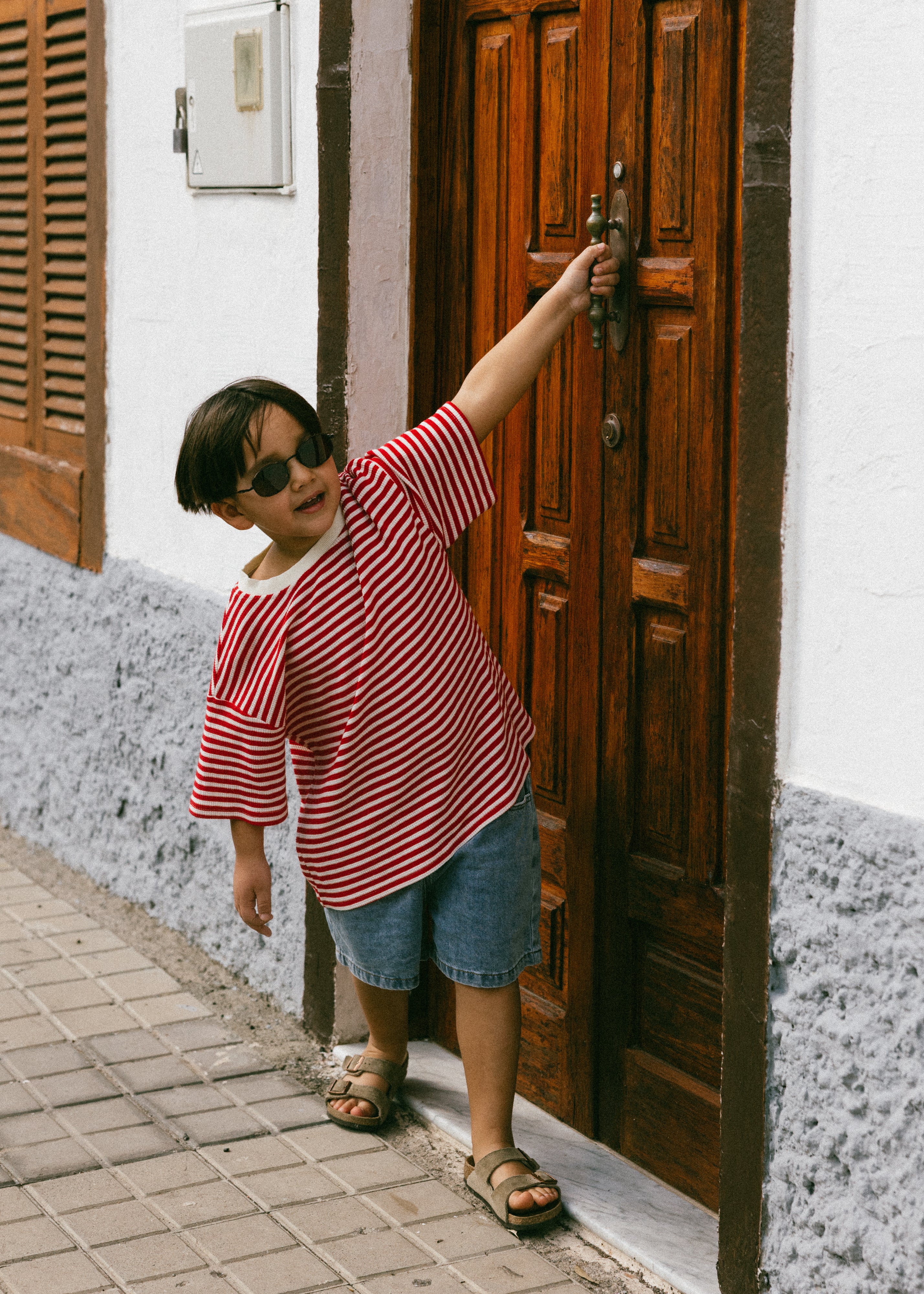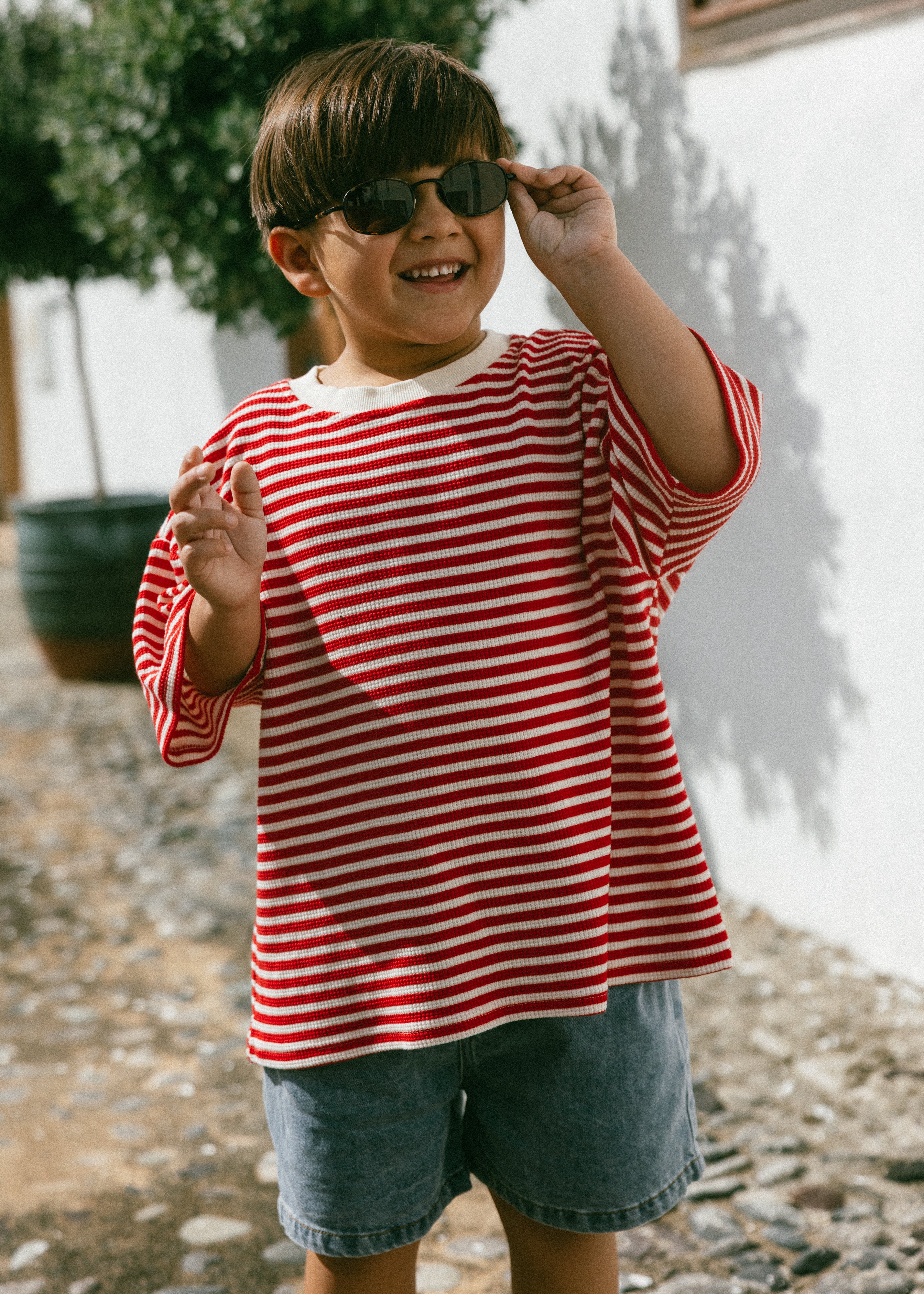 Waffle Stripe Tee- Red & Cream