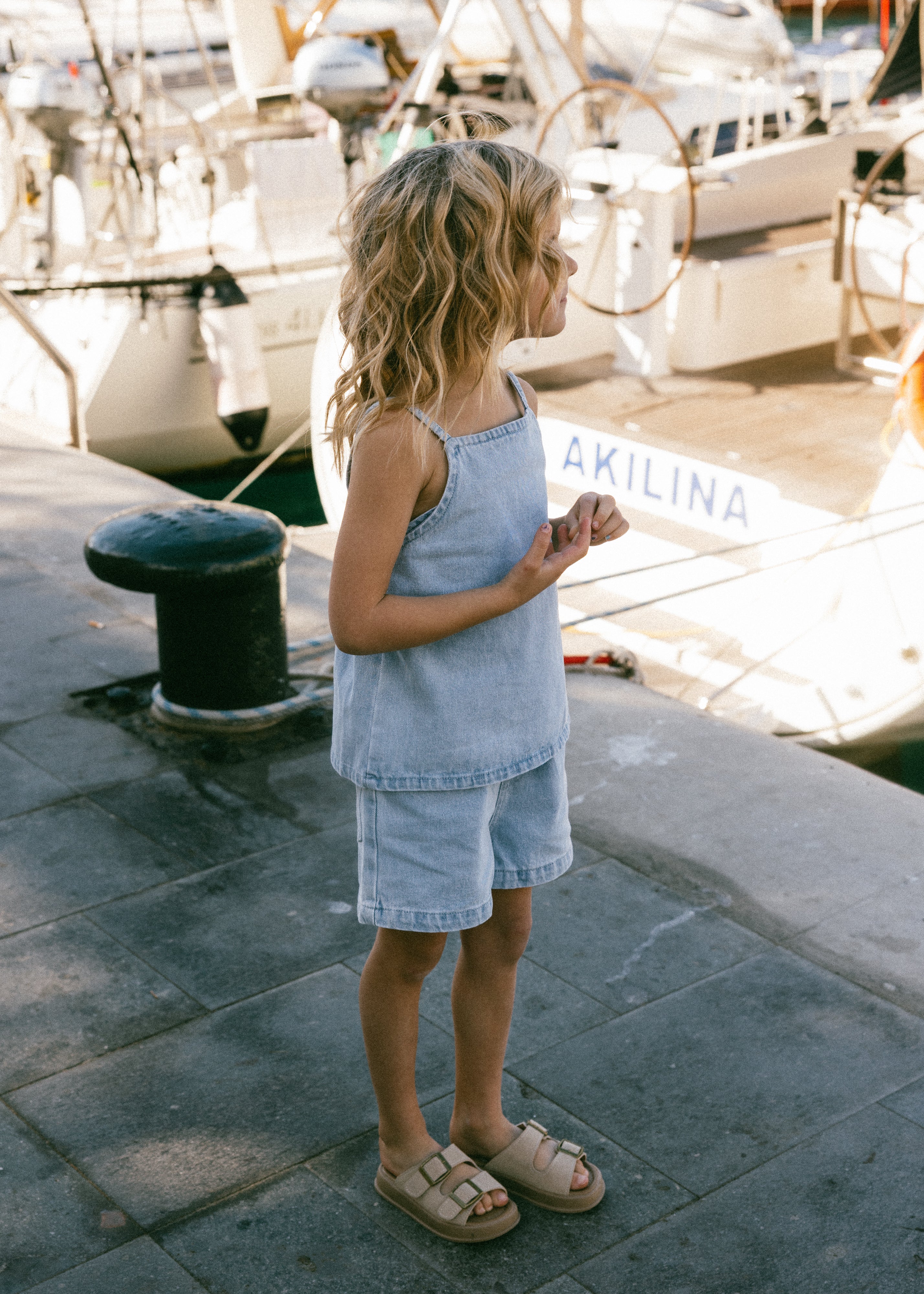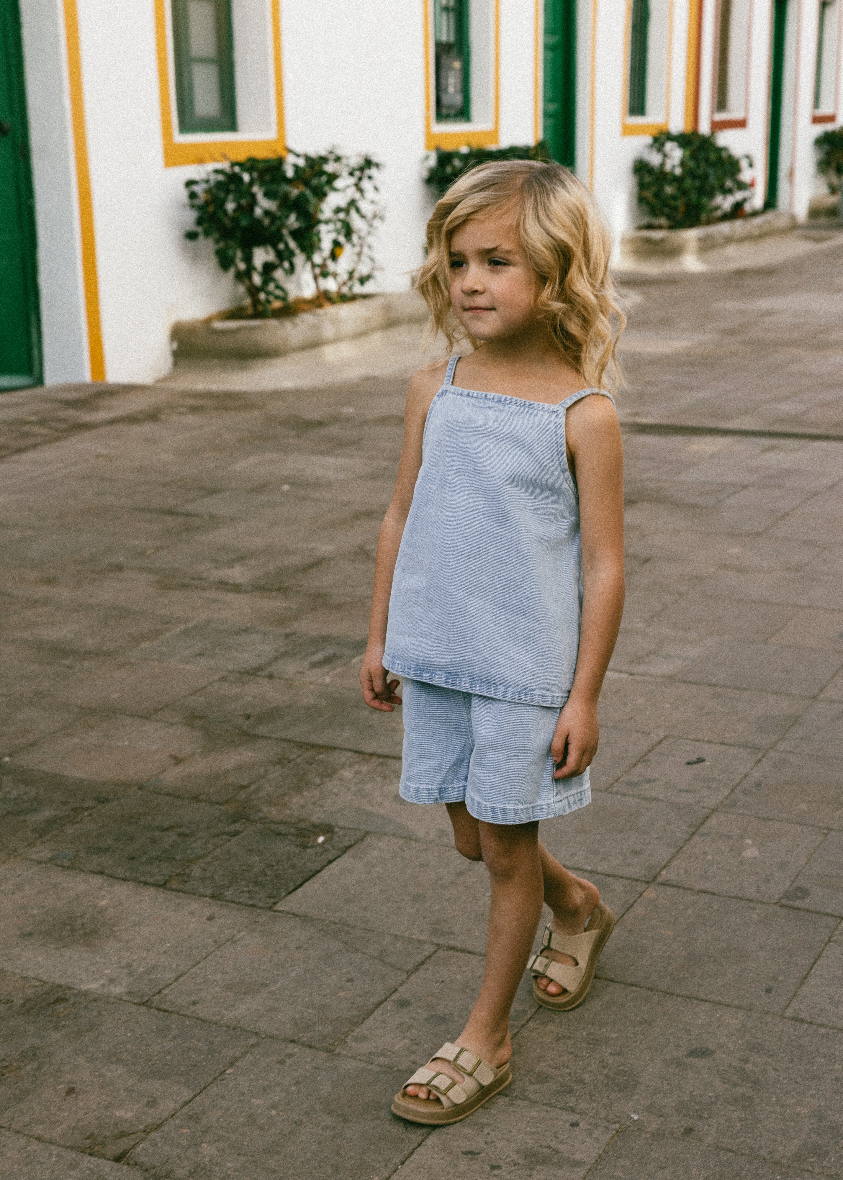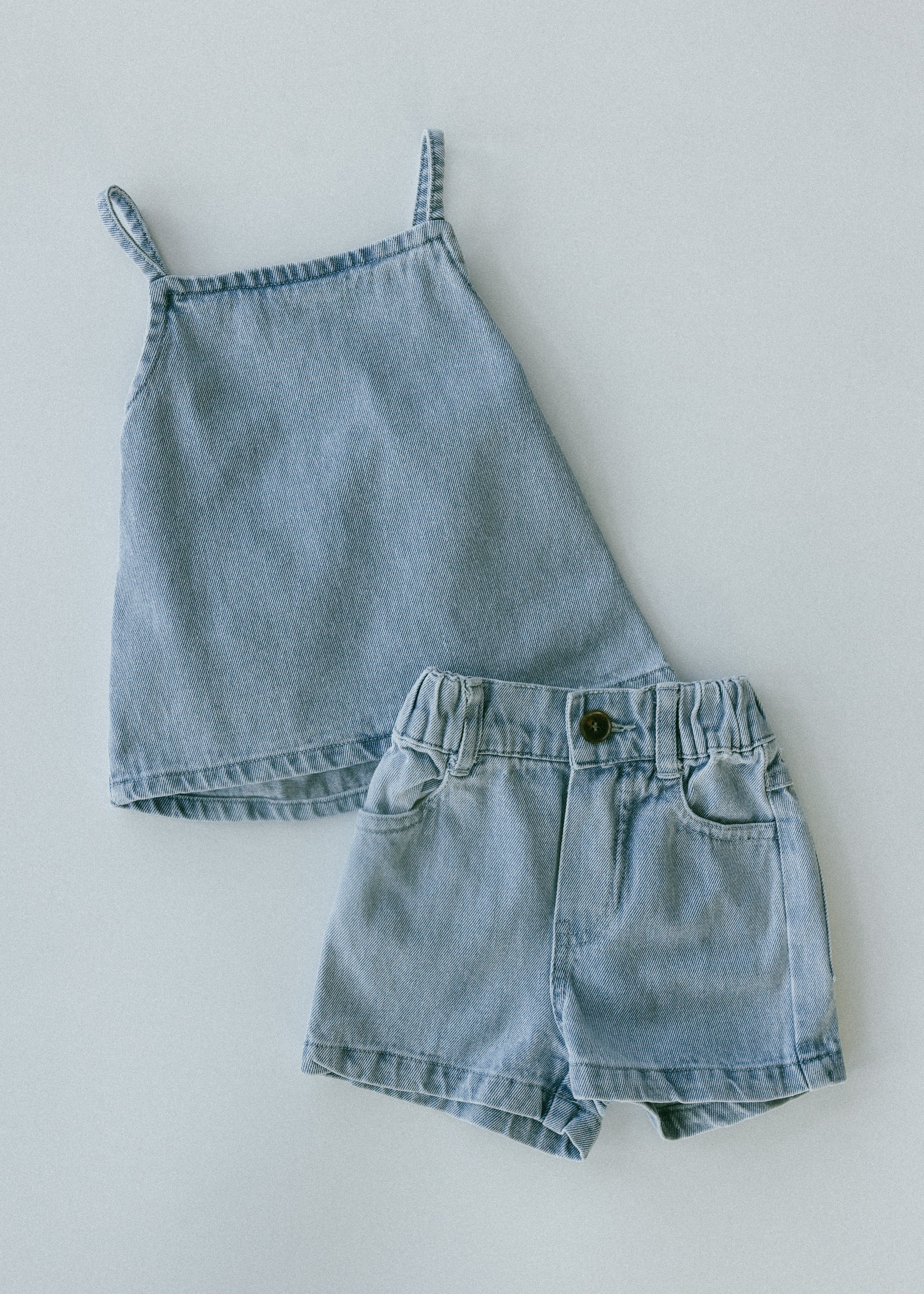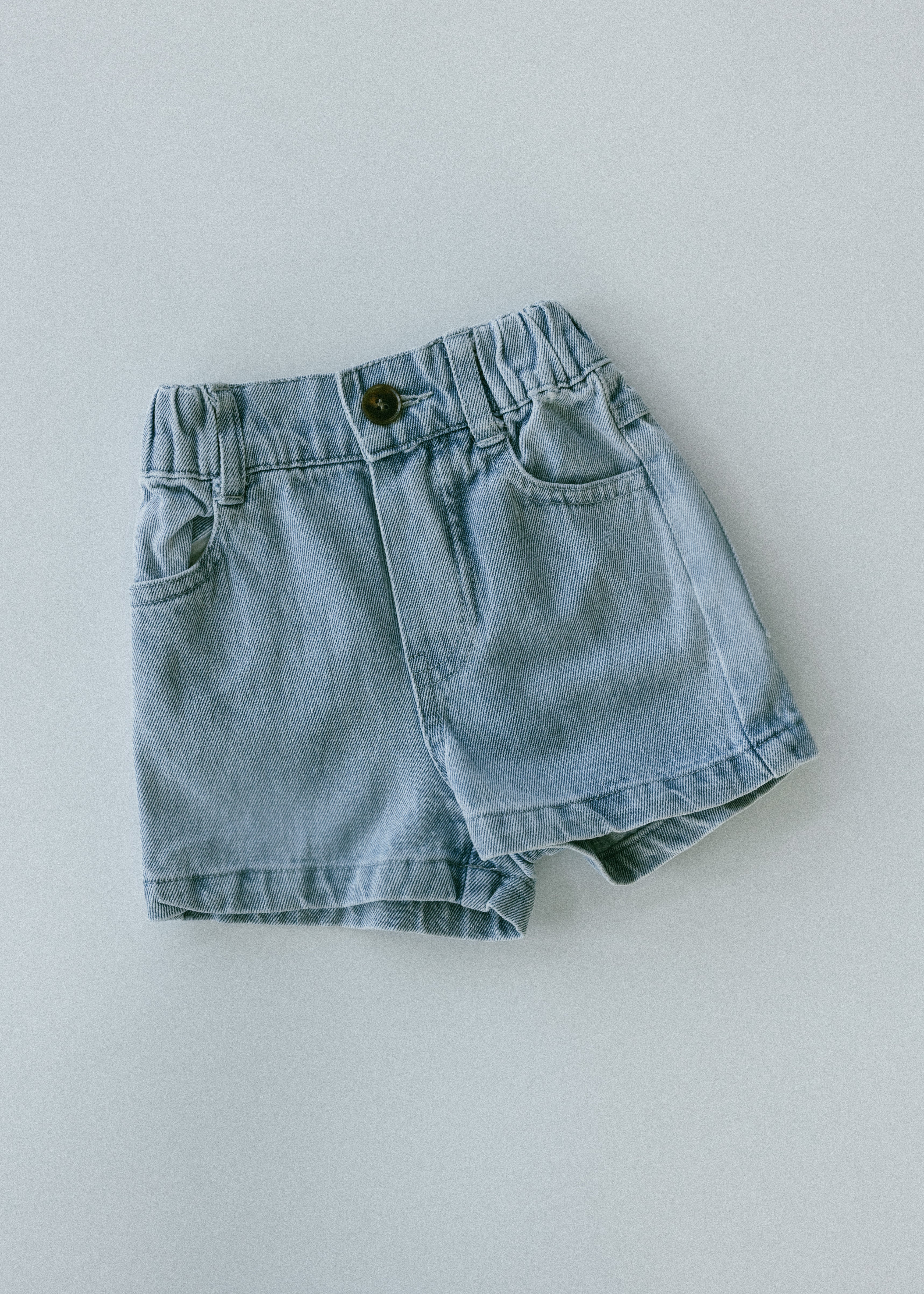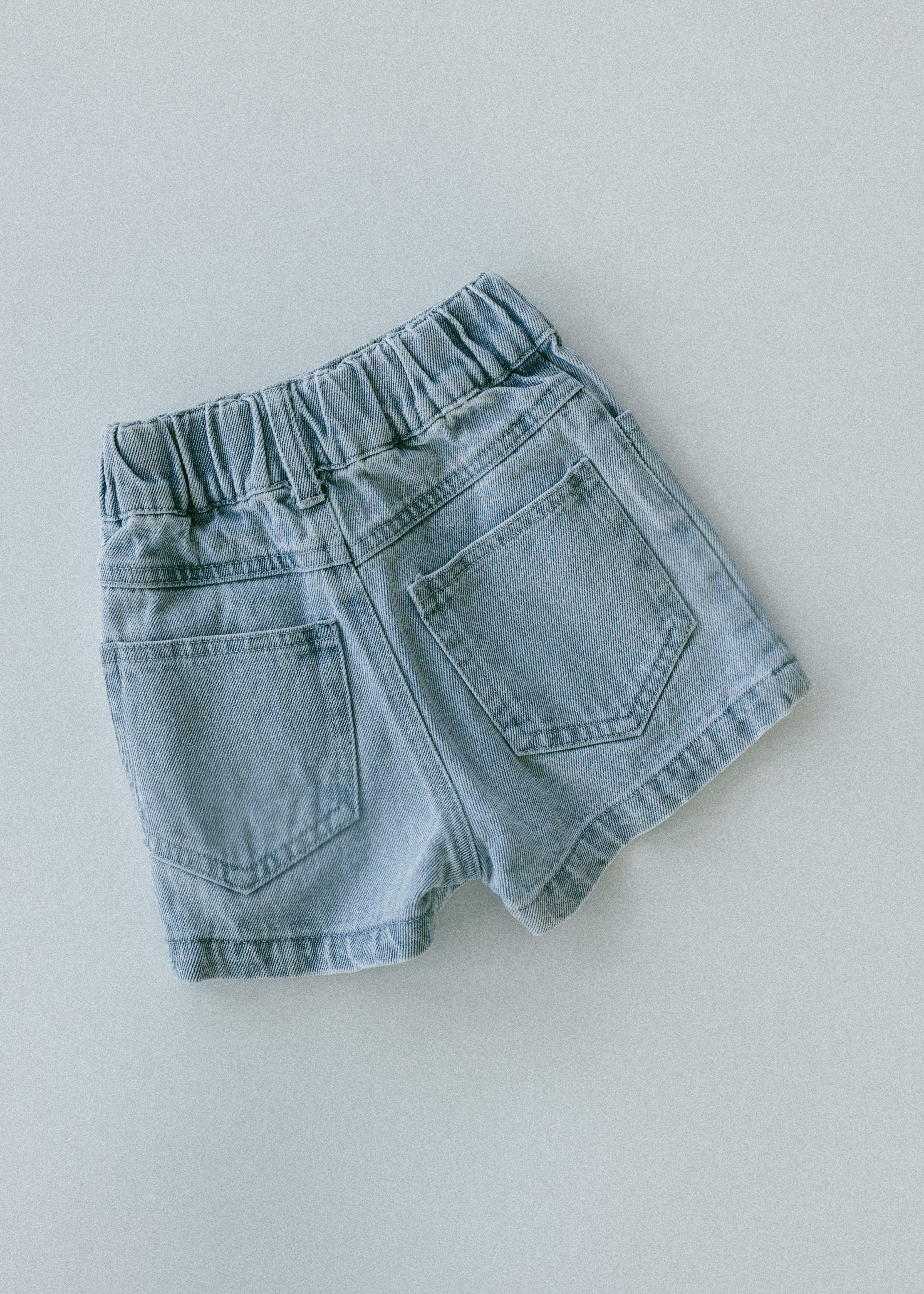 • Light wash denim shorts