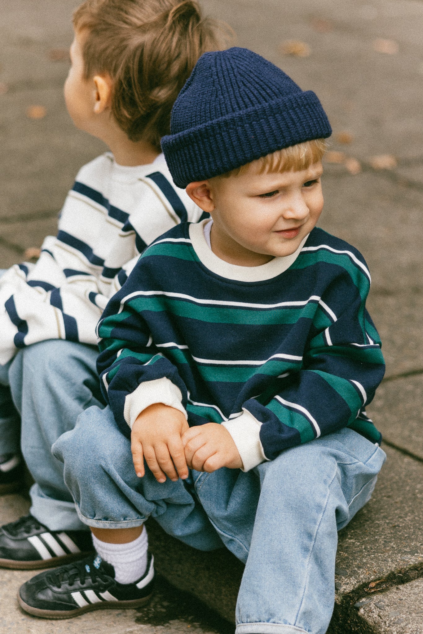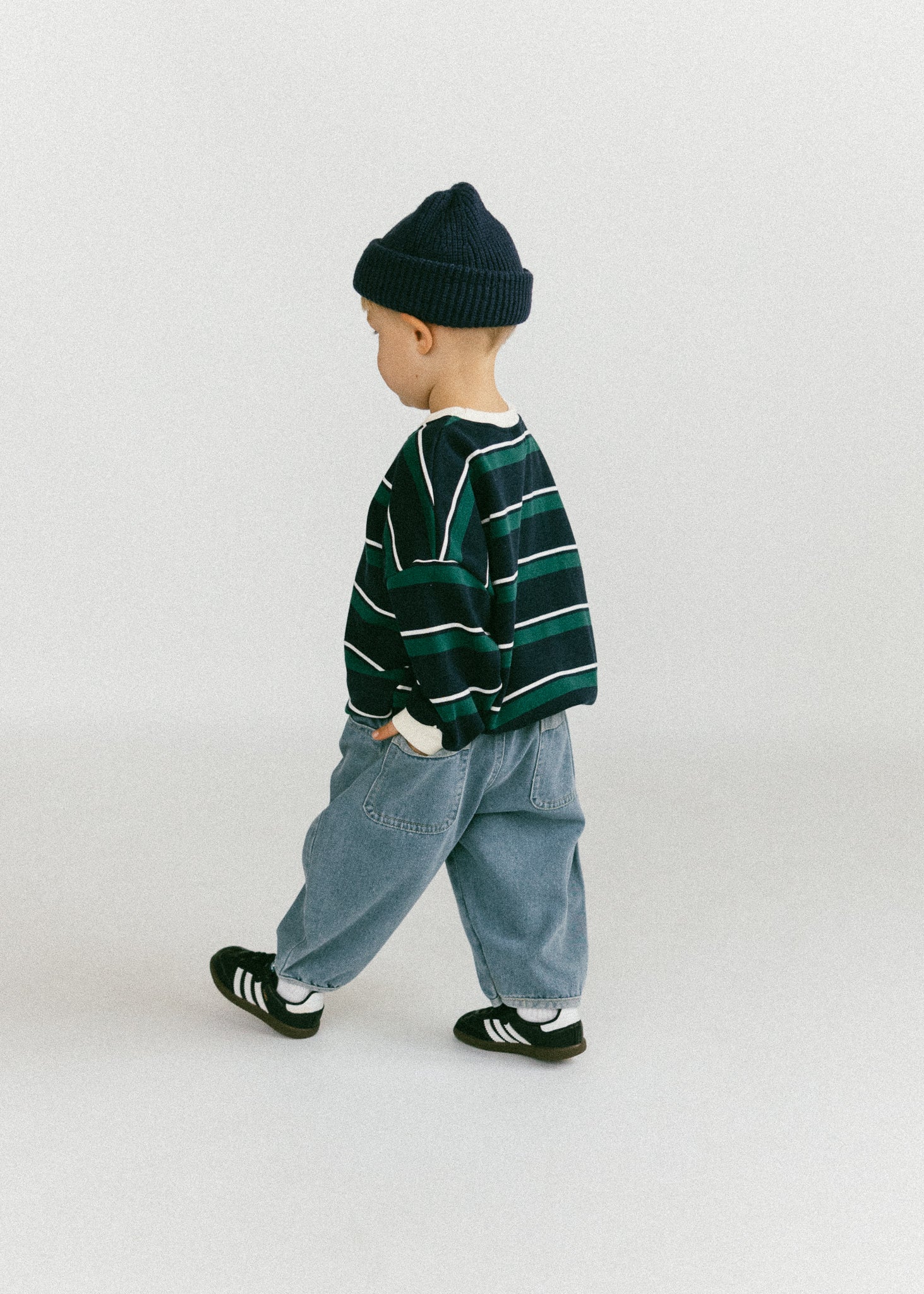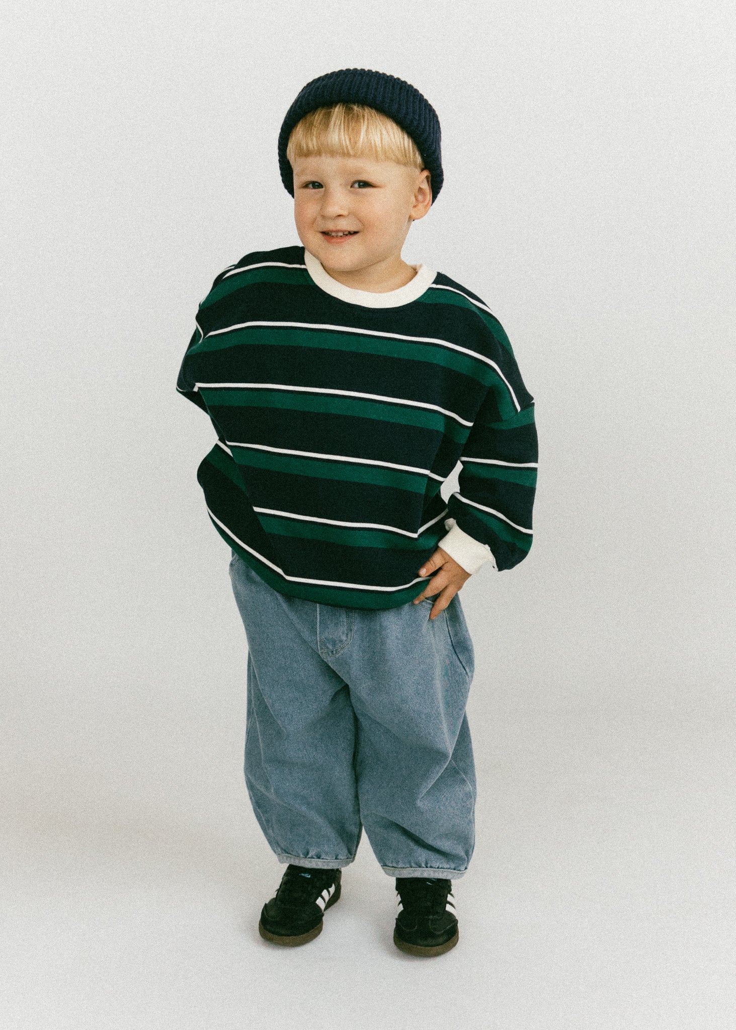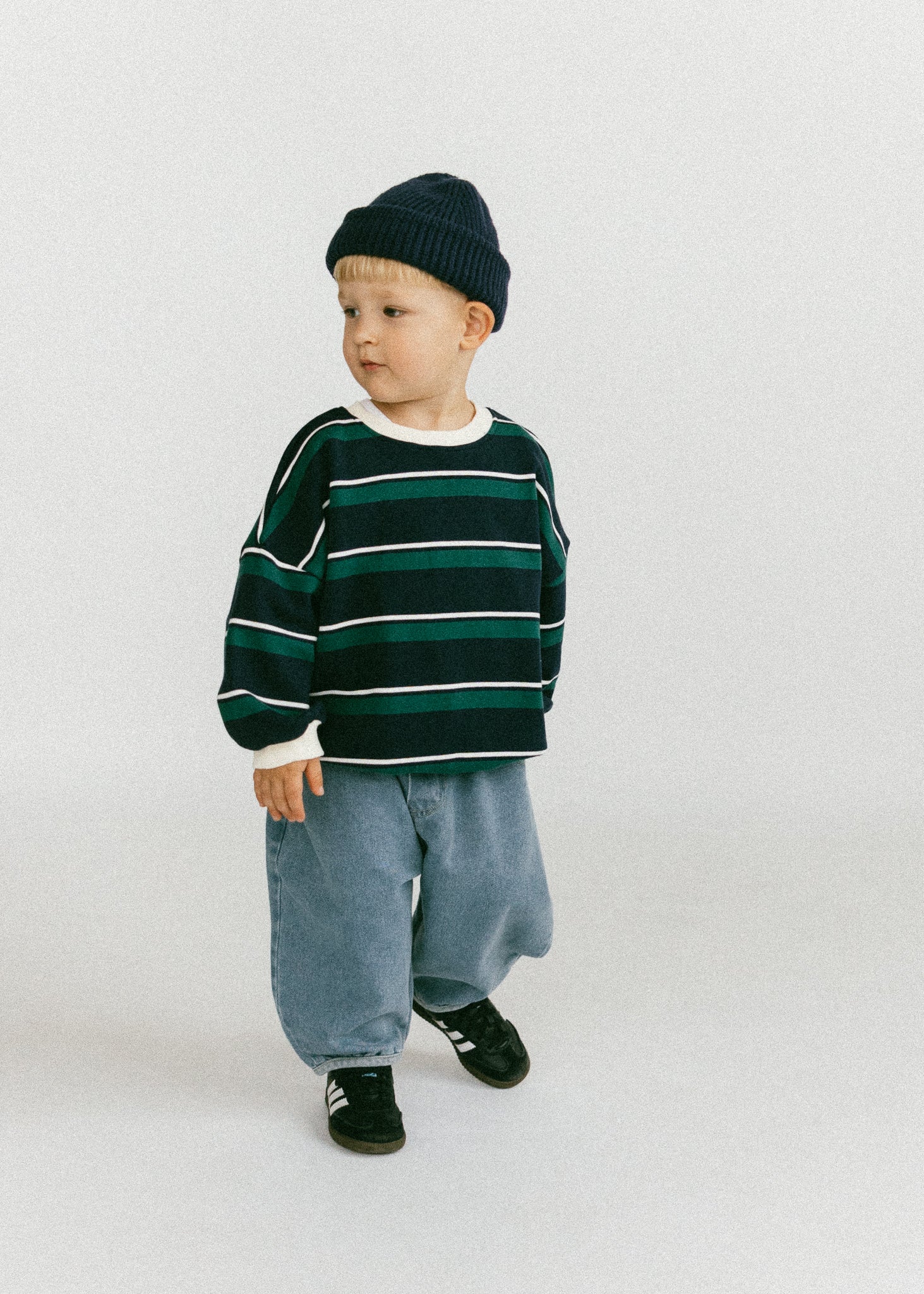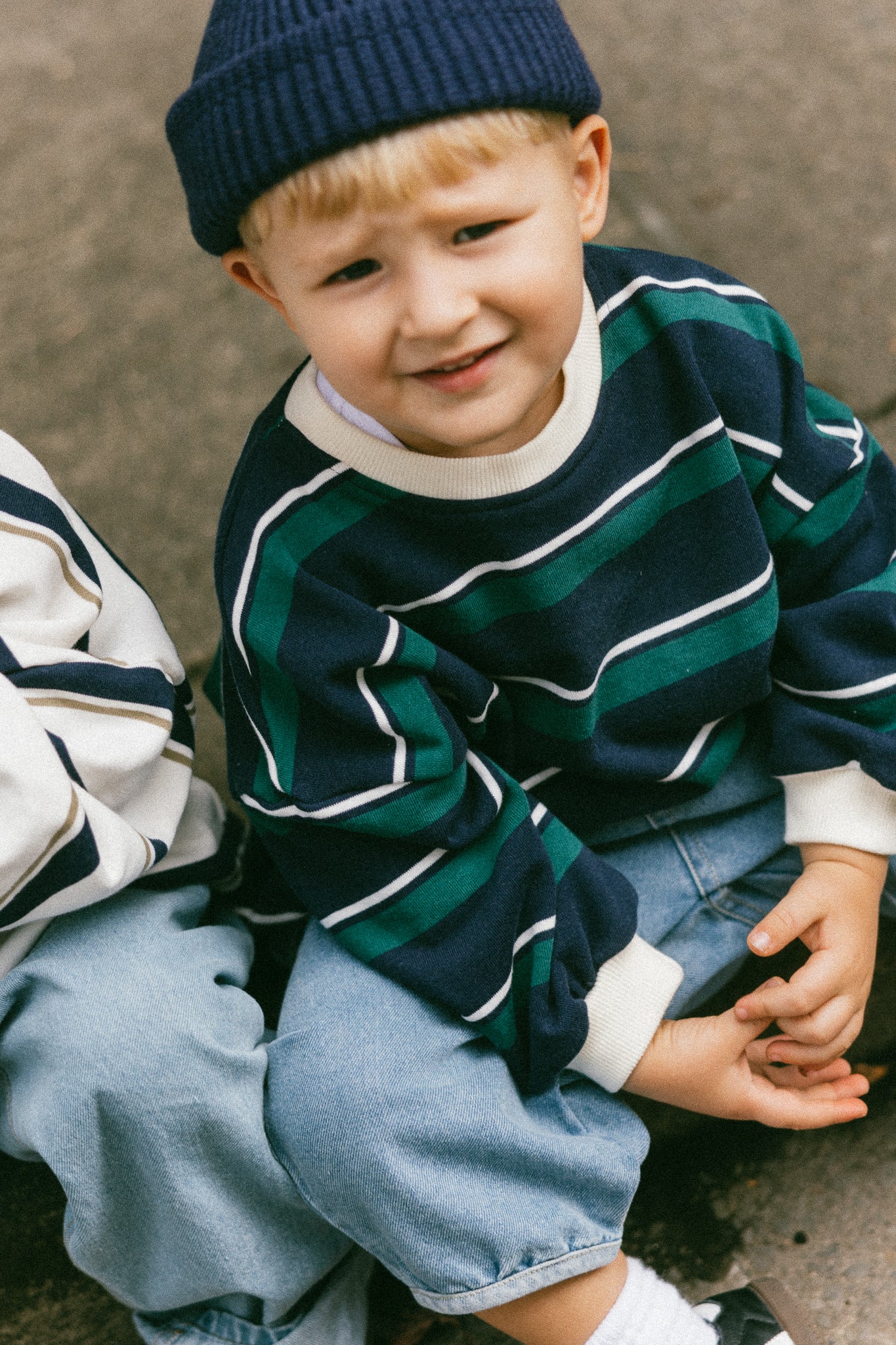 • Navy, green, and white stripes