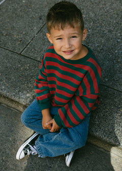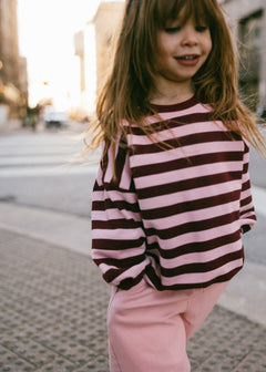 Love this sweatshirt! It has a baggy oversized fit. Paired with the balloon jeans makes the perfect vintage fit! We got a 5T and fits perfect and has an oversized fit on my 4yo who wears 5T normally.
