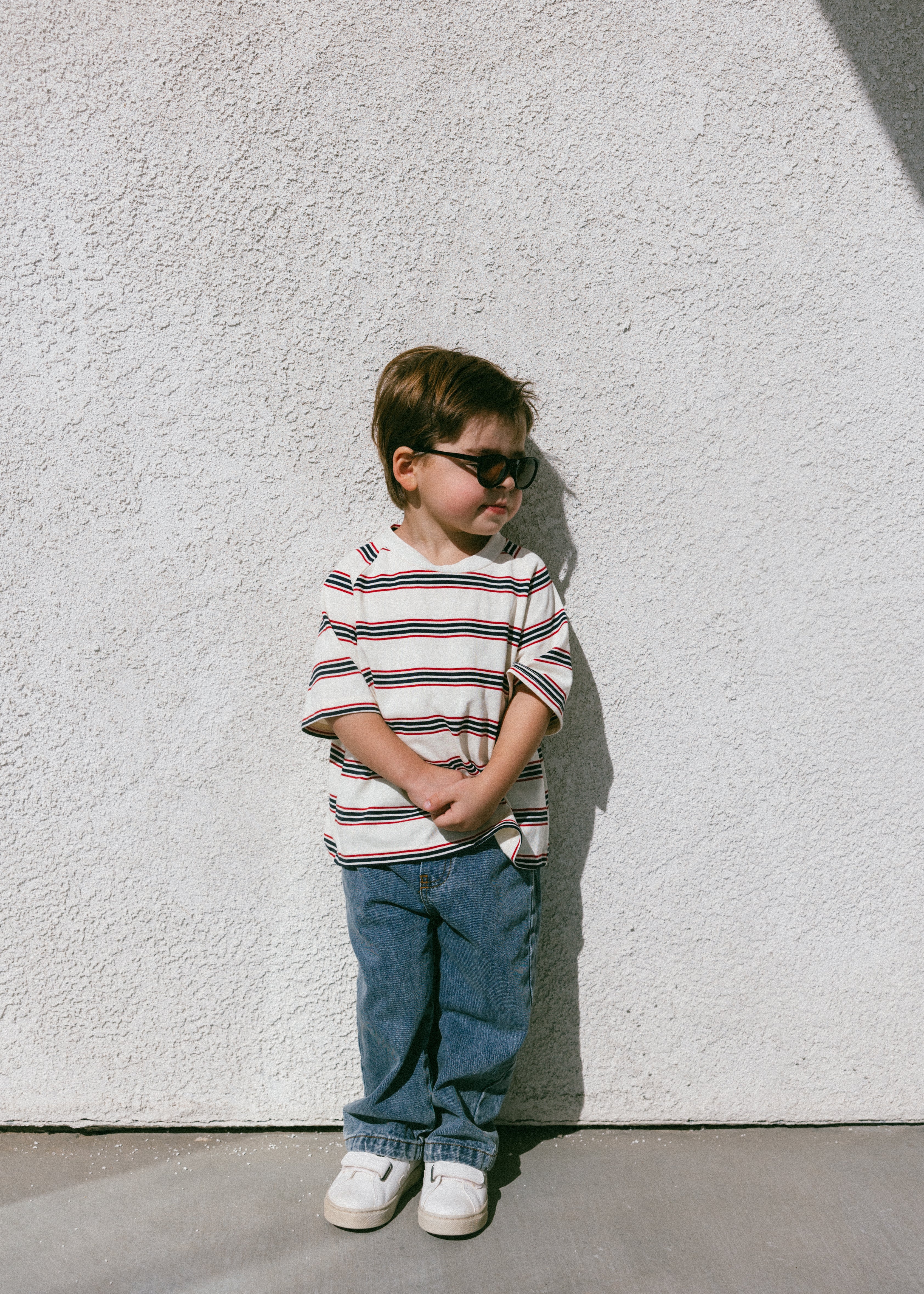 Baggy Tee- Striped- Navy & Red