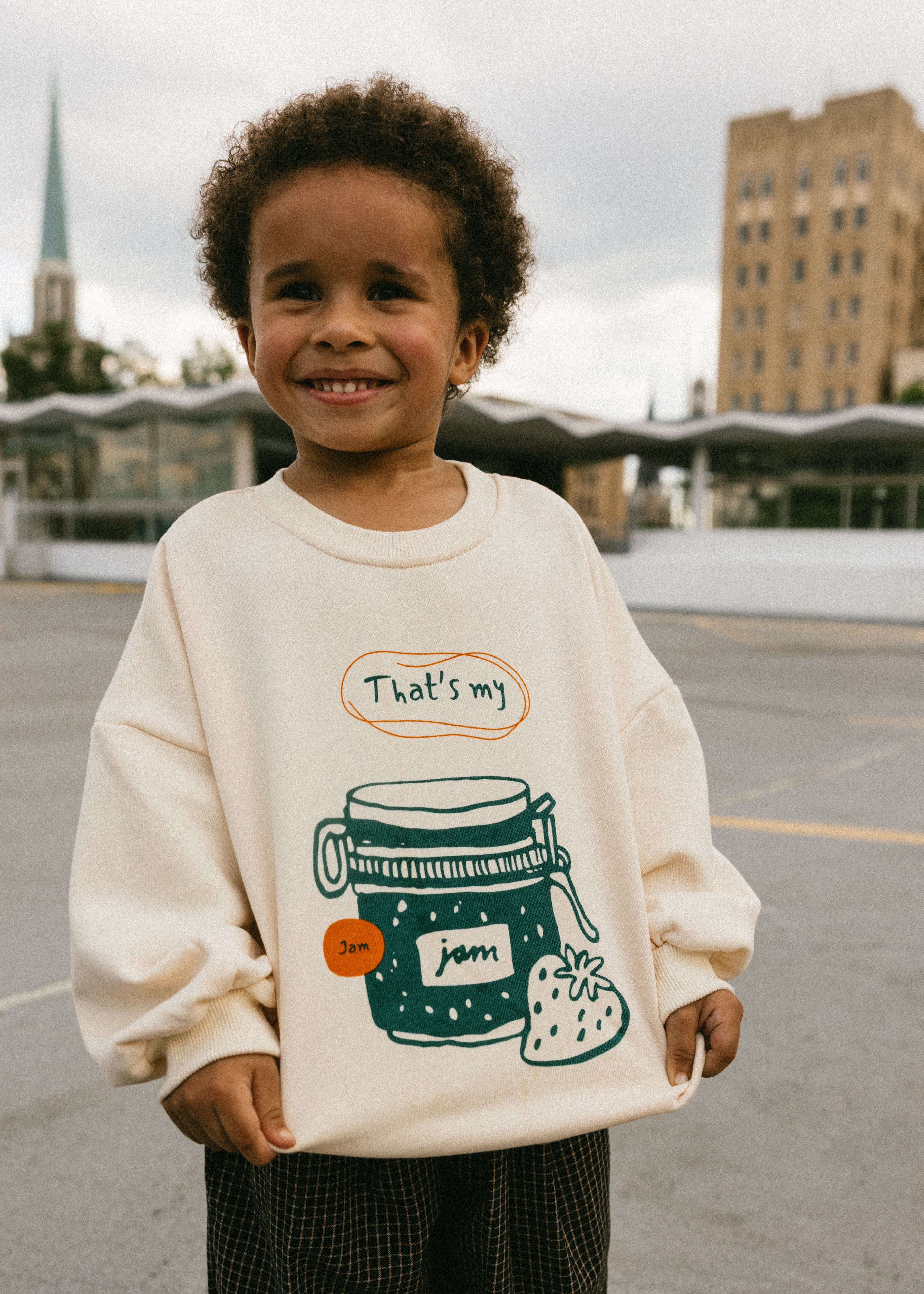 • Dark green and orange graphic "That's my jam" in dark green lettering with jam jar/strawberry