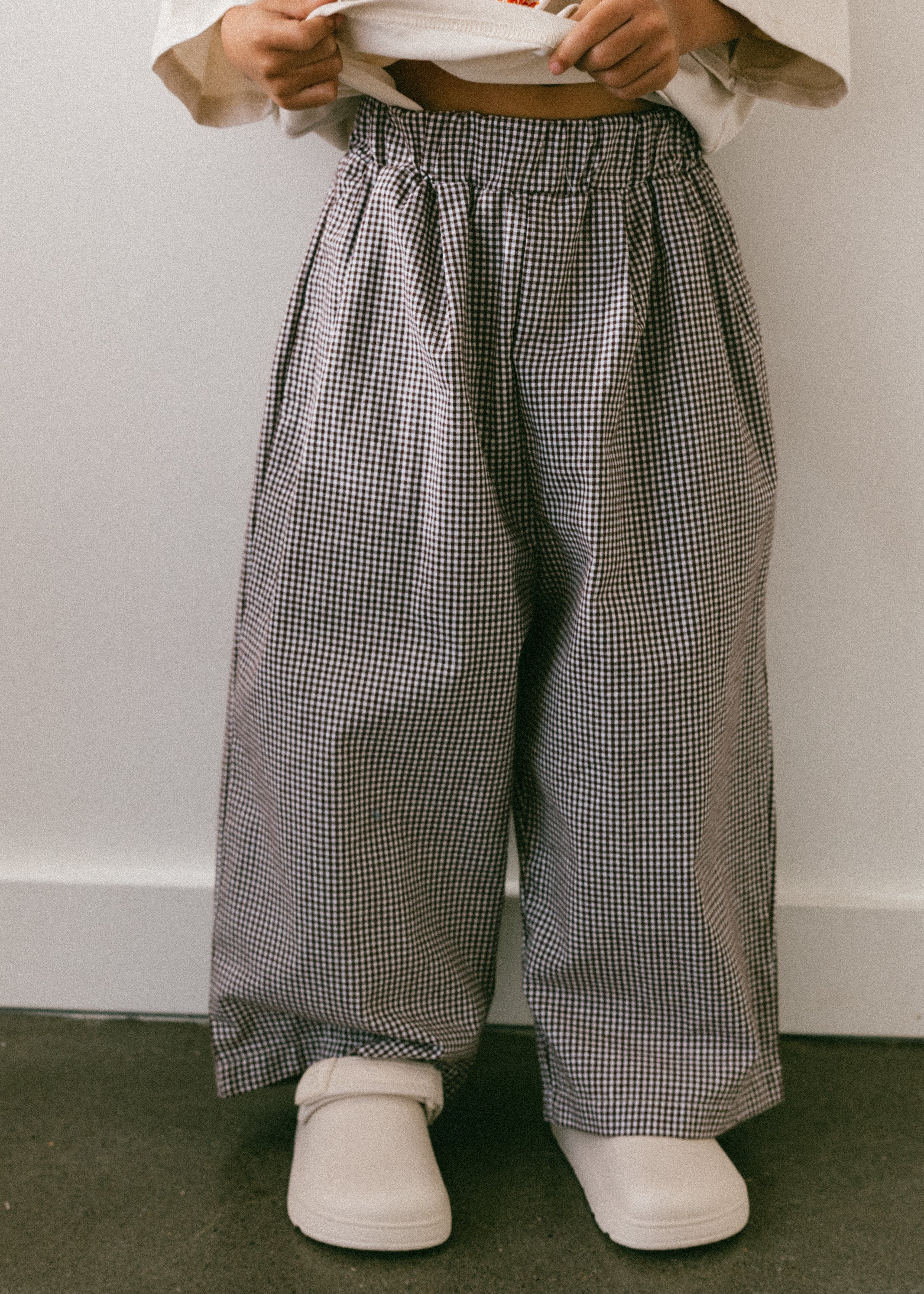 • Small brown & white gingham print